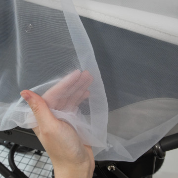 Ve spodní části je použitá vysoce elastická guma, díky ní síť těsně obepne korbičku kočárku a zabrání tak proniknutí hmyzu k vašemu miminku.